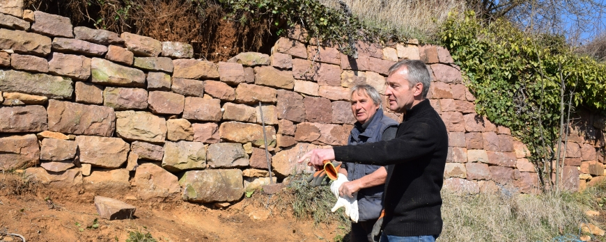 Au Clos Saint Imer il y a toujours du labeur ! La taille achevée, déjà on s'active à remonter inlassablement les murs en pierres sèches qui s'écroulent au fil du temps ; courage, huile de coude et bonne humeur sont nécessaires...